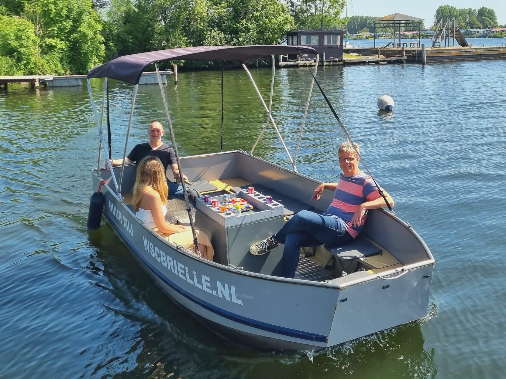 De Wally , onze leuke no nonsens robuuste stalen schuit met een in 2023 vervangen inboard dieselmotor. Makkelijk te varen boot voor 8 tot 10 pers . Geen vaarbewijs vereist . Kussentjes , zonnescherm en zwemtrap voor een heerlijke ( halve ) dag op het water